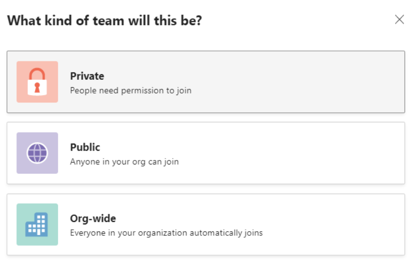- Use Org-wide for easy discoverability on appropriate Teams