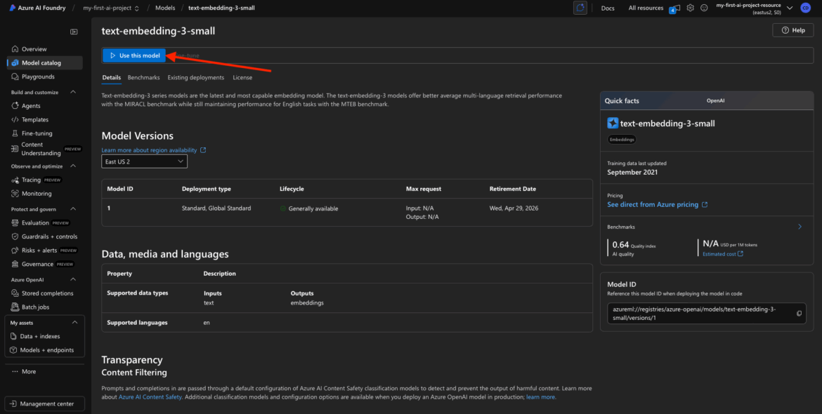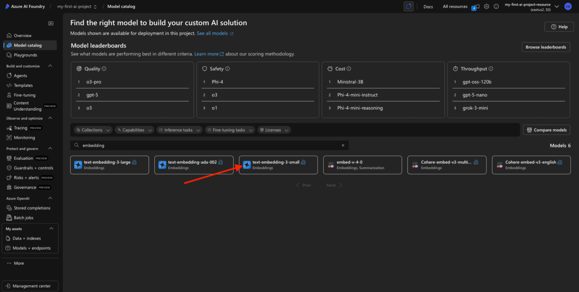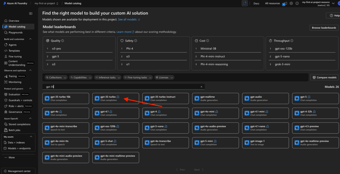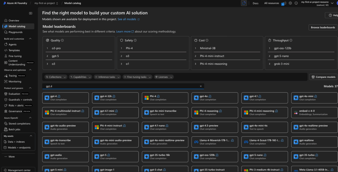 Now that you’ve created your first Azure AI Foundry project, it’s time to put it to work. In this step, we’ll explore the Model Catalog to find the AI models you want to deploy—specifically: