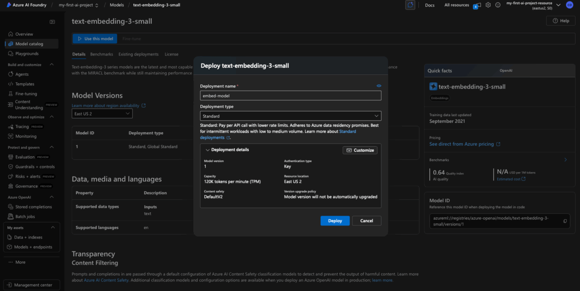 Pro tip: Start small. Use lightweight embedding models (like text-embedding-ada-002) and only deploy GPT-4 when you’re sure you need it. Azure AI charges by token usage, so scaling smart matters when setting your token parameters.