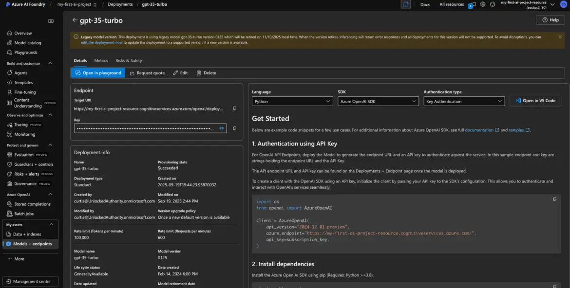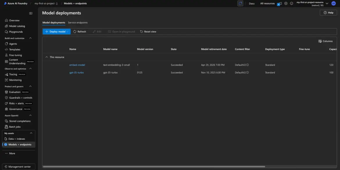 Note: If both models use the same Azure OpenAI resource, the key is shared. That’s perfectly normal. You can reuse the same key across all deployments in that project.