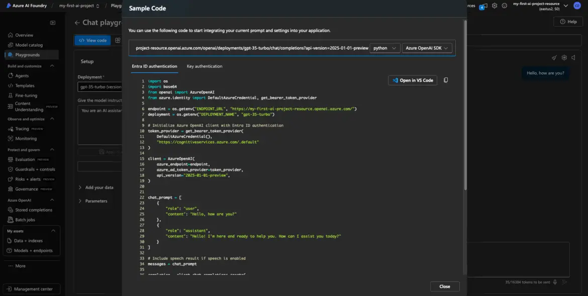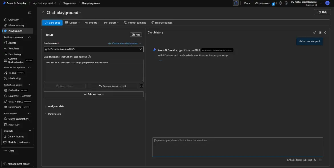 Congrats—you just made your first call to GPT-3.5 using your deployed model.